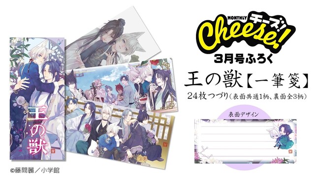 本日(2023年1月24日)発売の月刊コミック誌「Cheese!」3月号のふろくは、累計210万部突破の本格中華風ファンタジーコミック『王の獣』の美麗な一筆箋(いっぴつせん)!