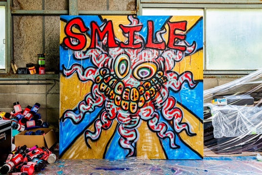 「よし、まず笑ってみようかな 元気が出るかも」アクリル画 縦162×横162cm 価格:1,650,000円