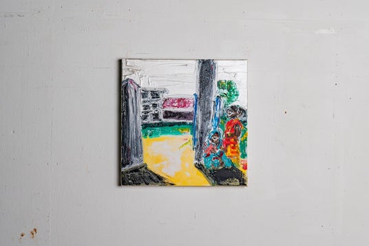 「笑っても仕方がない事だって、笑っていると一旦気持ちが落ち着いてくるさ」アクリル画 縦33.4×横24.2cm 価格:71,500円