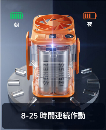 8-25時間の連続作動が可能なので、朝7時に出かけて夜9時に帰宅してもまだバッテリーが残っているため、一日中冷風を楽しめます!