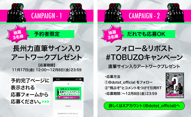 11月17日(金)よりドットエスティにて予約販売開始~長州さんサイン入りアートワークが当たるプレゼントキャンペーンも実施~
