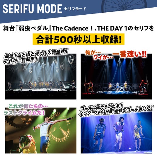 セリフモードでは、舞台『弱虫ペダル』The Cadence!、THE DAY 1のセリフを合計500秒以上収録!