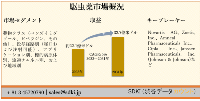 SDKI Inc.が「駆虫薬市場ー世界的な予測2022ー2031年」の新調査レポートを2022年03月01日に発刊しました。レポートは、業界の新ビジネスチャンスとともに、市場とその成長見通しの完全な評価を提供します。さらに、2022ー2031年の予測期間中の市場規模と年間成長率が含まれています。