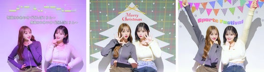 「プロジェクターフォト」仕上がりイメージ(選択テーマ:左からカラオケ、クリスマス、体育祭)