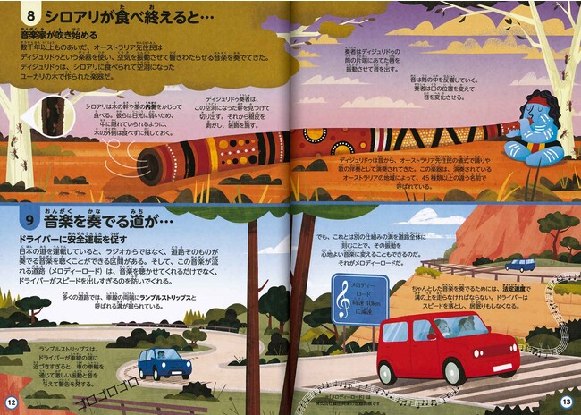 そのほかにも、地球の気候変動を訴える南極の氷の音や、今保護しなければ、なくなってしまうかもしれない民族音楽など、心に刻んでおきたい問題も提起。こういった知識についての解説は難しくなりがちですが、本書では、イラストによって視覚的に説明するインフォグラフィックの手法を用いてやさしく解説しています。読めば、理科系アタマを育てることはもちろん、地球環境から世界各国の文化まで、さまざまなことに興味を持つ機会にもなるでしょう。