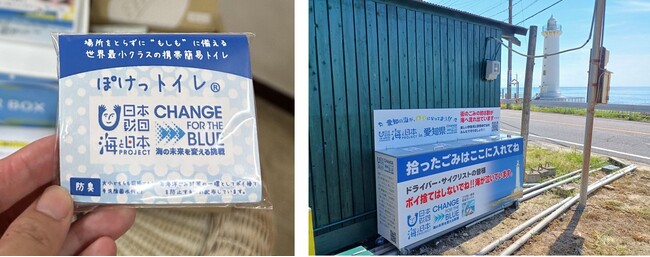 「秋の海ごみゼロウィーク2023」より、愛知県内各所にて海洋ごみについて訴求するための3つの取り組みを開始いたしました。名古屋トラックステーションでは、”ぽけっトイレ”の無料配布を開始いたしました!ポイ捨ての中でも近年問題視されている「尿入りペットボトル」。車内からポイ捨てされる「尿入りペットボトル」は一般人と比較してトラックドライバーが長時間運転、予期せぬ渋滞などやむを得ない状況に陥ることが多く運転中のトイレ問題に直面する機会が多いのではないかと考え、愛知県トラック協会の協力のもと、名古屋トラックステーションに世界最小サイズの携帯トイレ「ぽけっトイレ(海と日本プロジェクトコラボバージョン)」を無料配布するとともに、ポイ捨て禁止の啓発、及び簡易的なアンケートを実施しています。この取り組みを実施することで「尿入りペットボトル」の実態について知り、車内からのポイ捨てを減らすと共に新たな対策の糸口にし、海洋ごみ問題の改善に繋げていきます。