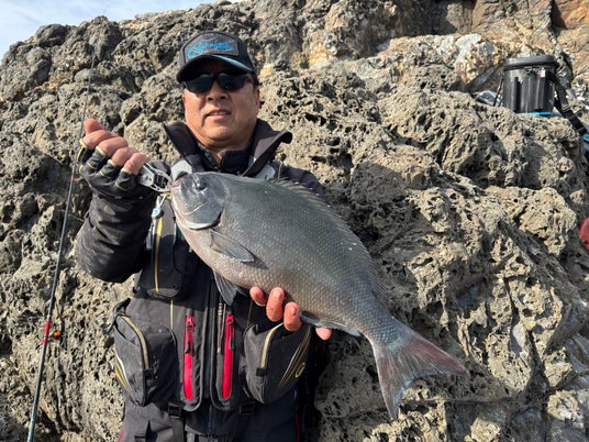 日本近海の磯釣りで釣れるメジナ(グレ)の仲間は、口太グレ(メジナ)、尾長グレ(クロメジナ)、ウシグレ(オキナメジナ)が知られる。もっとも身近なターゲットしては口太グレがつとに有名だが、口太グレよりもさらに大型になり、引きも強いことから憧れとなっているのが尾長グレだ。口太グレよりもやや南方系の魚種。尾長グレはエラブタの縁が黒い点や、鱗に黒い斑紋がある点、尾ビレの上下先端が尖り、切れ込みがある点などで口太グレと区別できる。口太グレに比べると、歯が鋭く、鈎を飲み込まれるとハリスを切られることが多くなるなど、ヒットさせてからの取り込みもテクニカル。
