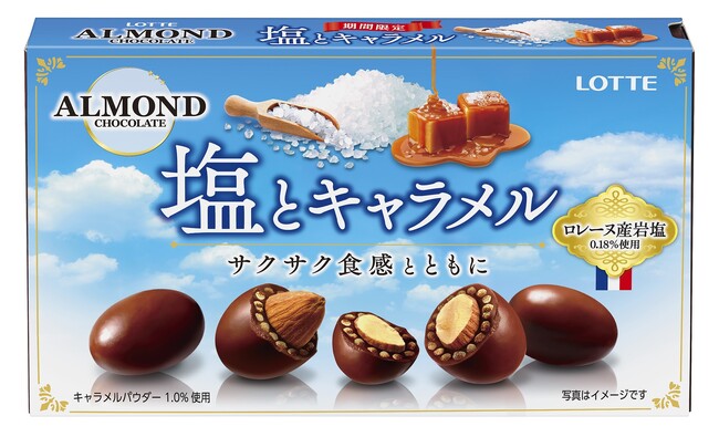 株式会社ロッテは6月13日(火)、キャラメルの甘さの中にロレーヌ産岩塩(*)の塩味がしっかりきいた、夏ならではのチョコレート「アーモンドチョコレート<塩とキャラメル>」を発売いたします。サクサクとした軽やかなパフを練り込み、アーモンドのカリッとした歯ごたえと合わせて2つの食感が楽しめます。塩とキャラメルの味わい、サクサクパフとアーモンドの食感が一体となった絶妙なおいしさをお楽しみください。 * ロレーヌ産岩塩0.18%使用