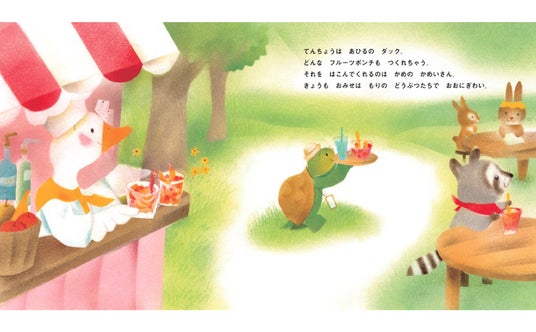 あひるのダックの作るフルーツポンチは、森の動物たちに大人気。いつもやってくるハリネズミのハリーさん、ちょっぴりいじわるなきつねさん、にぎやかなかるがもの親子など、個性豊かなお客さんが次々にやってきます。しゅわしゅわあま~いフルーツポンチは、作ってみたくなること間違いなし! 大人気絵本作家・いりやまさとしさんの可愛らしく、ユーモアのある絵も魅力です。