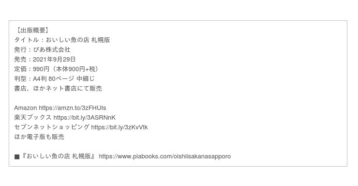 ■『おいしい魚の店 札幌版』 https://www.piabooks.com/oishiisakanasapporo