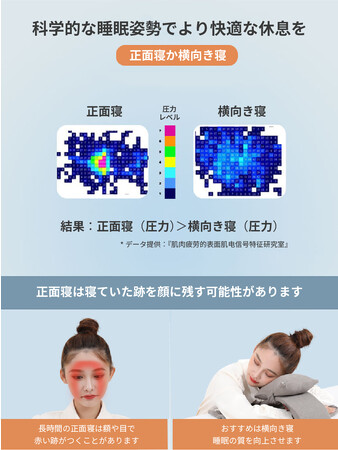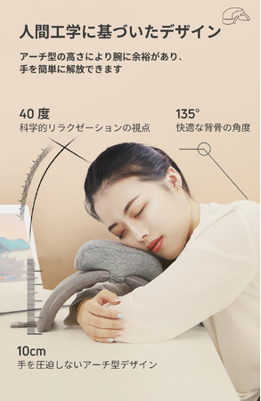 手を圧迫しない設計で、快適な睡眠をサポート。目を保護し、顔を優しく支えます。