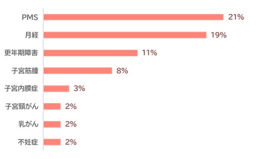 マイナビが行った 「企業と従業員の健康課題への認識に関する調査」では、女性特有の健康課題に悩む女性が抱える症状として、「PMS(月経前症候群)」、「月経」が上位にあがりました。これらの症状に対処するため、婦人科を受診したり、ピルを服用してコントロールする女性もいますが、個人差があるためすべての人に効果的とは限らず、十分な改善が見られない場合もあります。