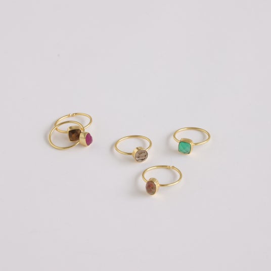 バイヤーがインドで直接買い付けたポーチやブローチ、天然石のリングを展開。