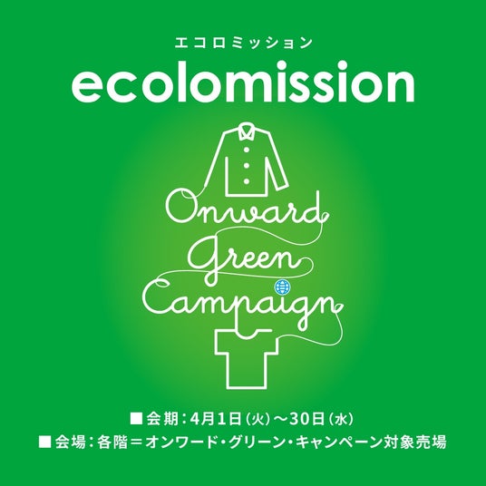 そごう・西武では、4月22日(火)のアースデイに合わせて、4月1日(火)~30日(水)の期間、「オンワード・グリーン・ キャンペーン×西武・そごうエコロミッション」を開催いたします。