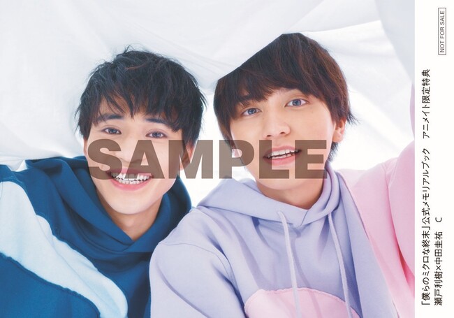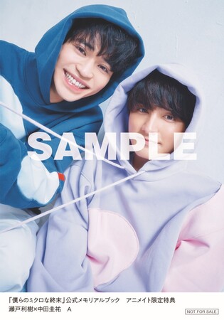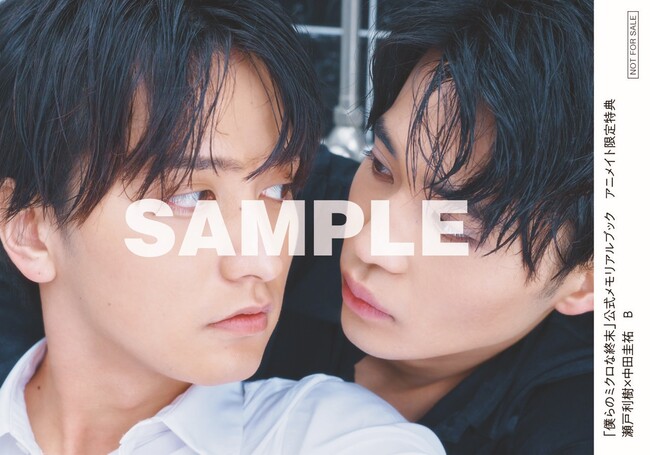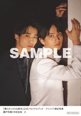アニメイト(通販・実店舗含む)にて「僕らのミクロな終末」公式メモリアルブックをご購入の方に、瀬戸利樹&中田圭祐2ショット生写真全4種類からランダムで1枚プレゼント!
