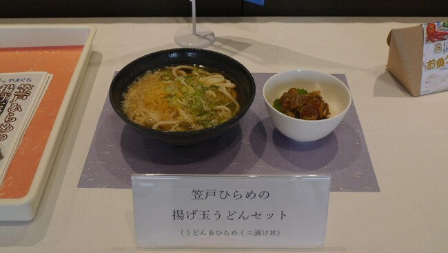 ・品名:笠戸ひらめの揚げ玉うどん (笠戸ひらめミニ漬け丼とのセット)