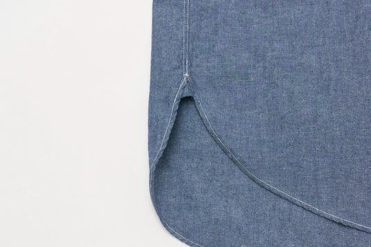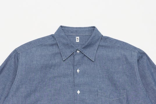 原型となったのは、60年代のアメリカのストアブランドのシャンブレーシャツ。パターンをはじめ、襟元の仕様や前たてなど、極めてシンプルなディテールをそのまま採用。一方で袖のステッチは2本。2枚袖の仕様で、ワークらしい雰囲気を感じさせる。決してわかりやすくはないけれど、よく見ると違和感がある。けれど特徴的ではない。だからこそどんな着こなしにも合ってしまう。不思議で便利な位置付けのシャツが形になった。