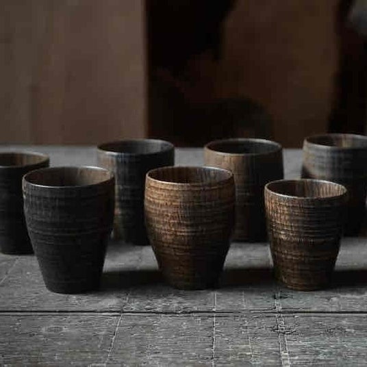 写真は、山梨県道志の木工作家 石黒雄大氏とのコラボアイテムの漆塗り木製コップ。贅沢に樺の無垢材を削り出し、漆塗りが施されています。