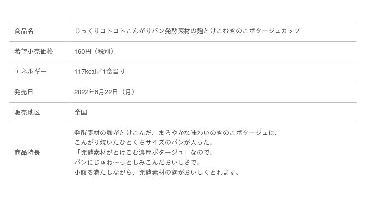 このような背景を受け、「じっくりコトコトこんがりパン発酵素材の麹とけこむきのこポタージュカップ」を