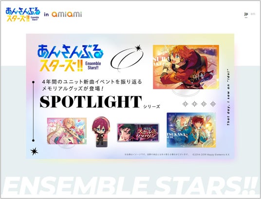 特設サイトは新商品の追加に合わせ更新され、『あんさんぶるスターズ!!』関連のキャラクターグッズ及びオーディオ・ビジュアルの新商品やおすすめ商品の情報を見やすいページ構成でご紹介していく予定です。