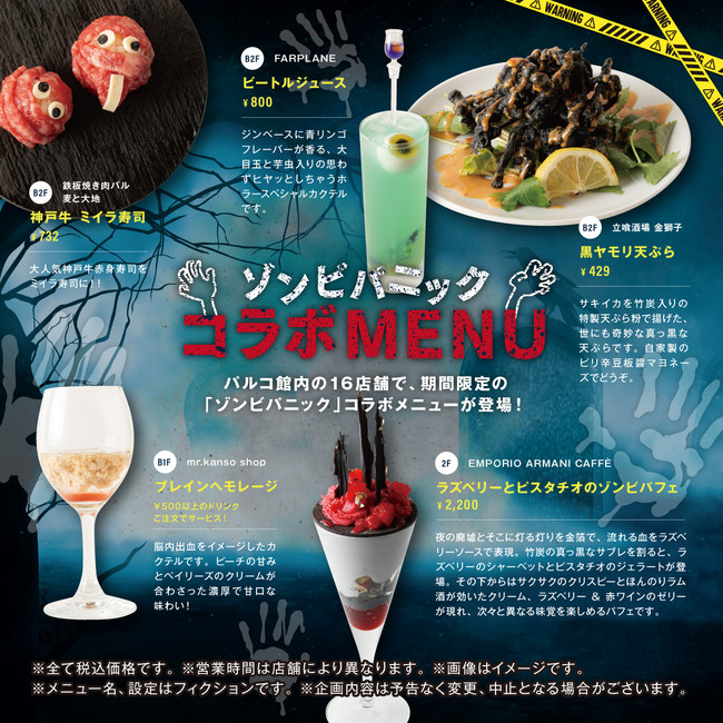 心斎橋PARCO館内では、ホラー感たっぷりのコラボメニューが17種類も登場!