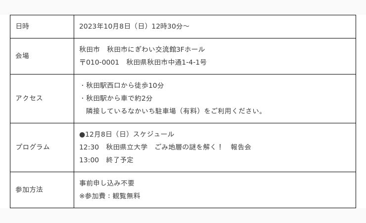 2023年10月8日(日)12時30分~ <開催場所:秋田市にぎわい交流館3Fホール>