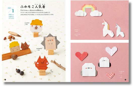 今回は、人気の動物がおりがみで大集合! かわいい犬、ねこをはじめ、ふわもこ人気のハムスター、はりねずみ、シマエナガ。女の子が大好きなユニコーン。動物園のライオン、ハシビロコウ、水族館のメンダコ、シロクマ、ペンギンなどなど……。四季の行事用に動物をアレンジした作品や、人気のポケットおりがみも動物バージョンで掲載され、折りたい! 楽しい! が満載の一冊です。