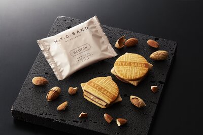 「N.Y.スカッチサンド」はアメリカで幅広い世代に親しまれ、 家庭の味でもあるスカッチを〈N.Y.C.SAND〉スタイルにアレンジしました。 まろやかな甘さと、 口に広がるキャラメルの濃厚な風味が人々をやさしい気持ちにしてくれる不思議なお菓子です。