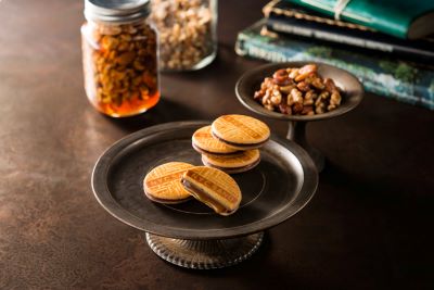 くるみのほどよいナッツ感が楽しめる「N.Y.メープルウォールナッツキャラメルサンド」。黒糖と生クリームでとろとろに炊き上げたキャラメルに、カナダ産メープルシロップの上品な甘さとウォールナッツペーストの香ばしさを合わせました。