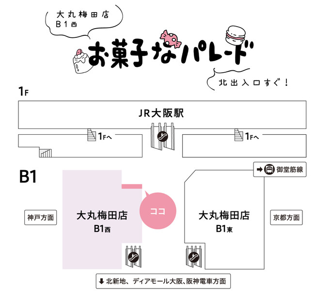 【場所】大丸梅田店 地1階 西 出入口前 お菓子なパレード