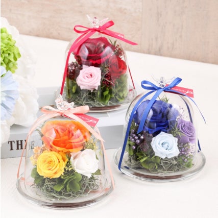 【人気投票2位】プリザーブドフラワーアレンジメントガラスドーム型のローズアレンジ。