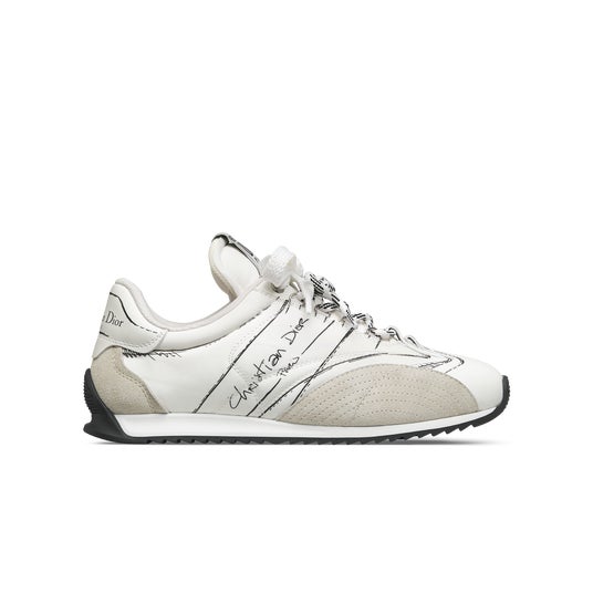 2025年春夏 コレクションで発表された、ヴィンテージ調のフォルムが目を引く「D-スケッチ」スニーカーは、この上なくレトロなシルエットとスレンダーなツートーンソールがポイントです。「ワーク イン プログレス」のスピリットが込められたこのスニーカーは、デザインする際に描かれた鉛筆のスケッチが手作業で再現され、まるでプロトタイプのように仕上がっています。ブラックとホワイトのプリントナイロン、シルバー、そしてゴールドのメタリックなクリンクルレザーで登場し、大胆なスタイルを叶えます。ダブルレースと "Christian Dior" シグネチャーがこの唯一無二のモデルにアクセントを添えます。この羨望のコレクションは、2025年2月6日より全国のディオール ブティックおよび、公式オンラインブティックでご覧いただけます。