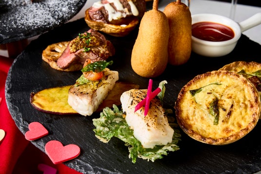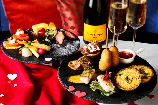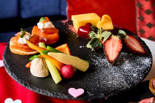 バレンタインのデートでは、おふたりだけの遊び心あふれる空間で、アロフト大阪堂島特製のカナッペとシャンパンをお楽しみください。