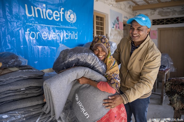約20万人の子どもとおとなに届けることを目標に、ユニセフはパートナーと共に、防寒服のキットや上着、毛布、中綿入りの寝具などの提供を開始しました。深刻化する子どもの生存の危機に対応するため、80万人以上の子どもたちの検査を行った結果、6万人が、身長に対して体重が少なすぎる重度の急性栄養不良に陥っていると特定されました。生命に関わる状態を脱するべく、これらの子どもたちは「すぐに食べられる栄養治療食(RUTF)」による治療を受けるよう治療担当者へ照会されました。ユニセフの保健に関わる支援活動は、これまでに約150万人の人々にプライマリ・ヘルスケアを提供し、16の被災地区で450万人の子どもたちにポリオの予防接種を行いました。さらにユニセフとパートナーは、100万人以上に安全な飲料水へのアクセスを、また100万人に衛生キットを提供しました。今後数カ月間、ユニセフは緊急の人道的ニーズへの対応を続けるとともに、自宅に戻る家族のために既存の保健・水・衛生・教育施設の復旧と再稼動に取り組んでいく予定です。