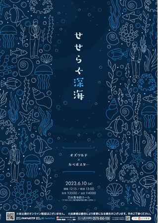 2022年それぞれ飛躍の年となった2組が、2023年更にパワーアップした姿をお見せできること間違いなしです。チケットの先行販売は、4月22日(土)11:00より、一般販売は4月29日(土)10:00より、FANY Ticketにて開始致します。今回はオンライン配信なしとなっておりますので、是非会場にて2組4匹のおさかなさんたちと一緒に深海をせせらぎましょう。