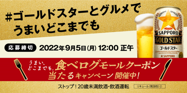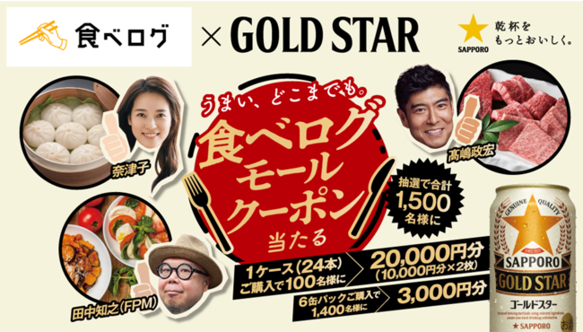 どこまでも、うまさを追求している「サッポロ GOLD STAR」と「食べログ」のコラボレーションが実現!総額600万円超の食べログモールで使えるクーポンを抽選で合計1,500名様にプレゼント!“