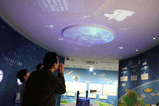 実物大ロケットの打ち上げが間近で観られる円筒スクリーンや自分で描いた人工衛星を天井に映し出せるシアターなどで楽しくロケットについて学びます。