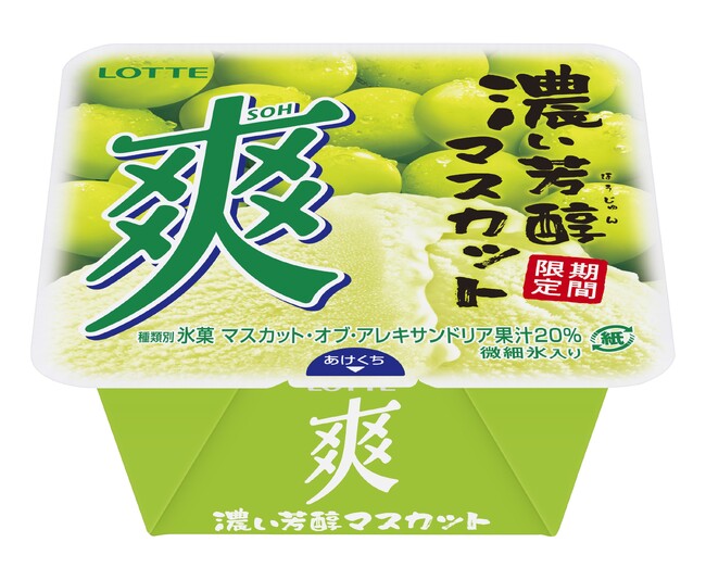 株式会社ロッテは8月28日(月)に、微細氷入りでシャリッとした食感とさっぱりとした後味が楽しめる 「爽」ブランドから、『爽 濃い芳醇マスカット』を発売いたします。ロッテ独自の「とろっと製法」で、果実特有のとろける食感の実現を目指しました。マスカット・オブ・アレキサンドリア果汁を20%使用し、これからの時期にうれしい、濃い味わいが楽しめます。爽の秋の新作をぜひご賞味ください。
