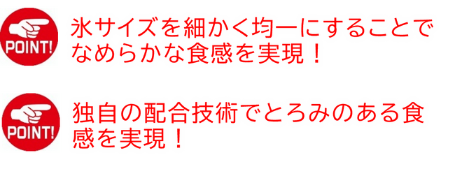 微細氷が織りなすくちどけの良いおいしさと食感が楽しめます。