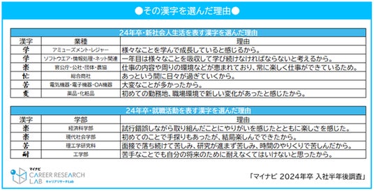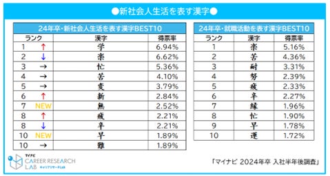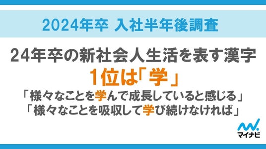 2024年卒の新社会人生活を表す漢字一文字、1位は「学」。「様々なことを学んで成長していると感じる」など前向きな意見