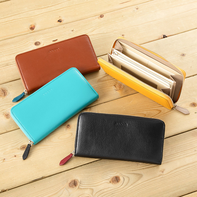 しっかりと開くマチ設計で、見やすく取り出しやすいデザイン。左右にある収容量大のポケット、小銭入れは横まで開くL字型で、使いやすさと上質な造りに細部までこだわっています。
