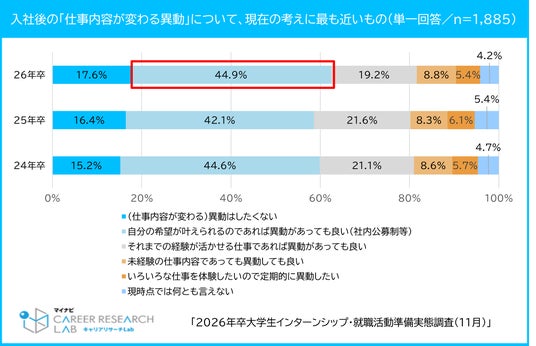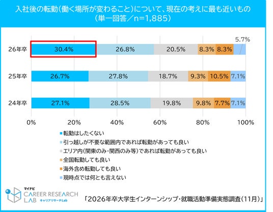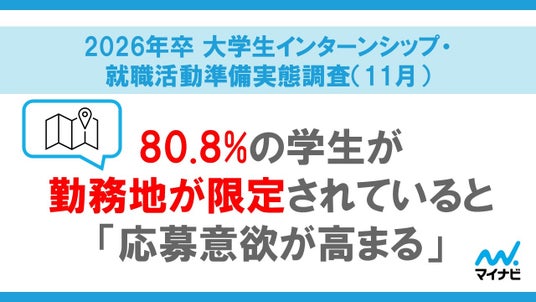 株式会社マイナビ(本社:東京都千代田区、代表取締役 社長執行役員:土屋芳明)は、2026年卒業予定の全国の大学生、大学院生を対象に実施した、「マイナビ 2026年卒 大学生インターンシップ・就職活動準備実態調査(11月)」の結果を発表しました。