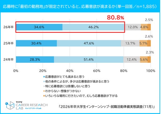 ◆80.8%が「最初の勤務地」が限定されていると、志望意欲が「高まる」と回答