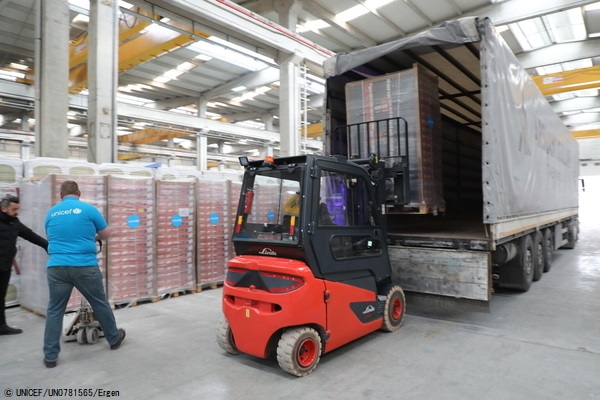 トルコとシリアを襲った大地震に対する緊急支援活動の一環として現地時間の12日、ユニセフ(国連児童基金)の物資供給部門は、被災した子どもたちや家族が暖を取れるよう1,000台以上の電気ストーブをアンカラ県(トルコ)の倉庫より被災地へ向け発送した、と発表しました。被災地では気温が氷点下まで下がり、雪や氷雨が日常的に降る厳しい天候に見舞われています。
