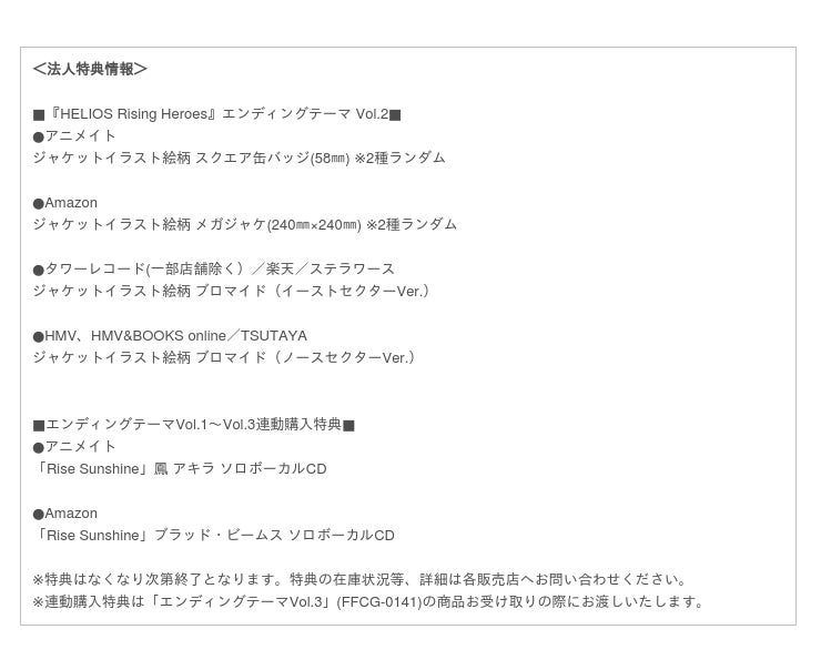 【タイトル】『HELIOS Rising Heroes』エンディングテーマ Vol.2
