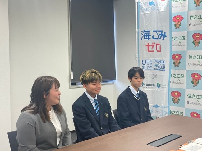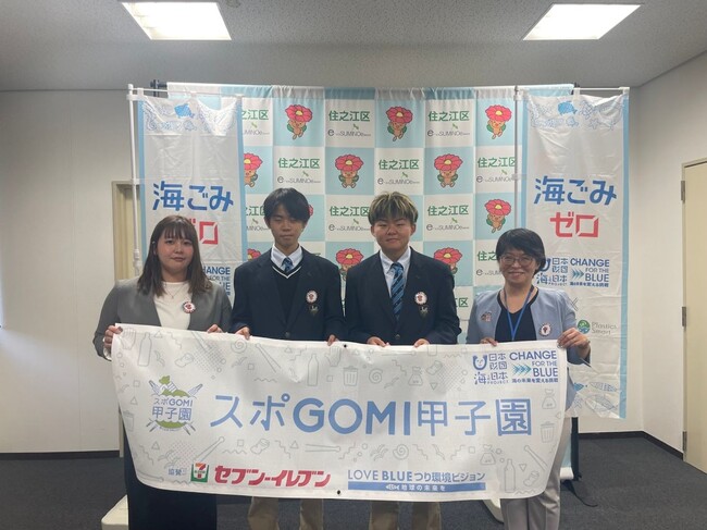 2023年7月16日(水)に行われた『スポGOMI甲子園2023・大阪府大会』で優勝した水都国際高等学校(大阪府大阪市住之江区、校長:井上省三)在校生3人組の「世界水都計画」が、大会での成果を報告するため住之江区の末村祐子区長を表敬訪問しました。