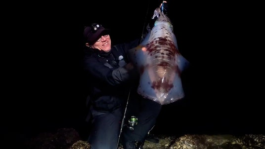 スタッフが到着すると、ヤマラッピの第一声は「釣れましたよ!」。なんとコンディションが悪い中、1.5キロのアオリイカを仕留めていた!