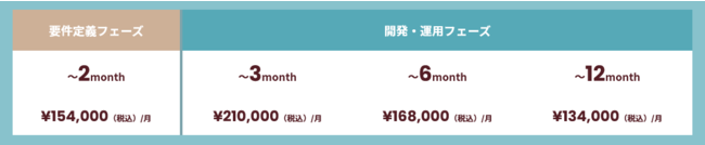 1ヶ月~6ヶ月以内:168,000円(税込)/月