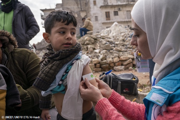 ユニセフは、地震で被災した人々の命を守るために、24時間体制で支援活動を続けています。例えばシリアのアレッポではユニセフが支援する移動医療チームが、被災した子どもたちの健康状態のチェックと支援を続けています。またトルコでは、イスタンブールから被災地のアディヤマンとカフラマンマラシュへ、追加で数万セットの家庭用衛生用品キットなどの支援物資を輸送中です。