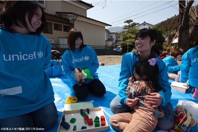 「子どもにやさしい空間」は、ユニセフのサポートの下、2011年の東日本大震災の支援の現場でも、多くの子ども支援団体によって展開されました。日本ユニセフ協会は、実際に現場での活動に関わった専門家から、いざという時に支援の現場で使える国内の実情に即した標準的な指針の整備を求める声や、「大きな災害が頻発する日本でこそ『子どもにやさしい空間』を災害支援のスタンダードに」との声に応え、2013年に、現場で使える実践的ガイドブック、「子どもにやさしい空間ガイドブック」を制作しています。